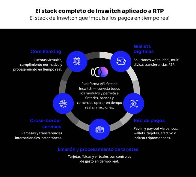 - Inswitch conecta bancos, fintechs y comercios a través de APIs unificadas, simplificando la integración de pagos instantáneos.